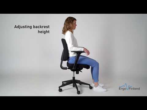 Selkänoja on korkeussäädettävä 6 cm, ja käsinojat voidaan säätää 8 cm välillä korkeussuunnassa käyttäjän tarpeiden mukaan. Tuolin verhoilukangas on kulutusta kestävää mustaa Fighter-kangasta (130 000 Martindale).