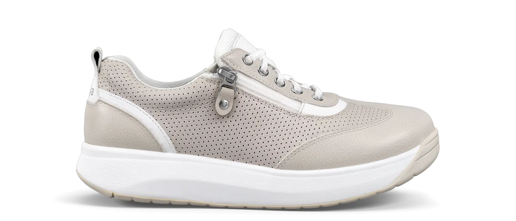 Pehmeä ja hienostunut, täysnahkainen, tumble-käsitelty nauhakenkä, jossa on lisänä vetoketju helppoa pukemista varten. Kengän sivuilla on kevyet rei’itykset ja hengittävä verkkovuori. Täydellinen kumppani päivän askareisiin ilman väsyneitä jalkoja.