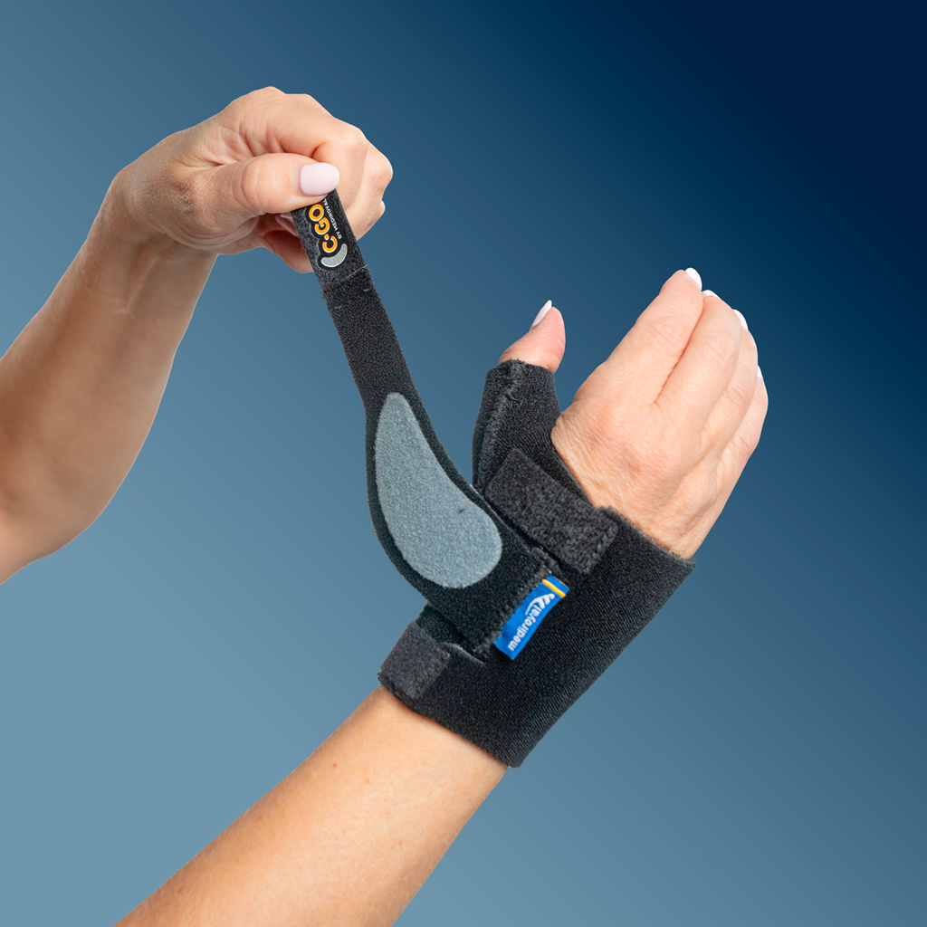 Pehmeä ja joustava peukalortoosi rei'itetystä CR-vaahtomuovista, jossa on pehmustettu sisäpuoli, joka suojaa ja keventää peukaloa. Suunniteltu ilman lastaa pitämään peukalon neutraalissa lepoasennossa, mikä tekee siitä erityisen sopivan CMC- ja MP-nivelongelmiin. Peukalon tukihihna on valmistettu Neptune™-materiaalista ja tarjoaa lisätukea CMC-nivelelle, ja hihnan alla oleva koukkuosa kiinnittää tukitoiminnon haluttuun asentoon.