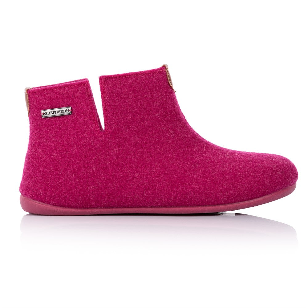 Shepherd Ester on naisten nilkkakorkuinen villatohveli, joka sopii erinomaisesti sisäkengäksi arjen askareisiin. Sivuhalkiot helpottavat pukemista ja riisumista, pehmeä villapohjallinen lisää käyttömukavuutta ja kestävä kumipohja takaa hyvän pidon. Nahkayksityiskohdat ja edessä näkyvä sauma antavat tohvelille ajattoman ilmeen. Mukava ja tyylikäs tohveli aktiivisiin hetkiin kotona.