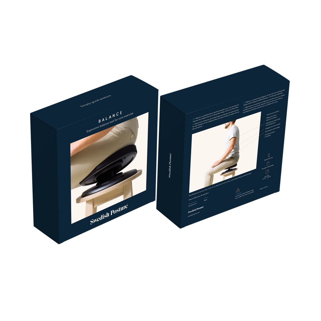 Swedish Posturen Balance on ergonominen pehmustettu istuin, jossa on epävakaa istuinalusta. Käyttäessäsi aktiivi-istuinta aktivoit samalla keskivartalon lihaksiasi, joilla ylläpidät hyvän istuma-asennon. Aktiivi-istuimella parannat ryhtiäsi, liikkuvuutta, tasapainoa ja voimaa istuessasi.
