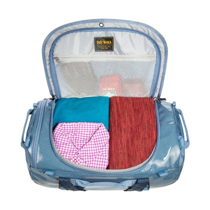 Tämä Tatonkan Barrel laukku on tilavuudeltaan 45 litraa, ja se sopii mainiosti lyhyille matkoille. Barrel sopii malliltaan hyvin myös urheilukassiksi. Laukussa on leveät kantokahvat ja irrotettavat repun olkahihnat. Kannen alla on litteä vetoketjullinen verkkotasku, jossa voi helposti säilyttää pienempiä reissutavaroita.