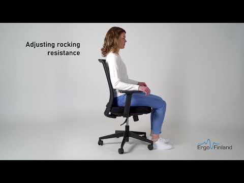 Ergonomisessa Kasper Light työtuolissa on lukittava keinumekanismi, jossa vastuksen säätömahdollisuus. Selkänojan mesh-kangas on hengittävää materiaalia ja istuin on verhoiltu kestävällä kankaalla. Käsinojat ovat kiinteät.